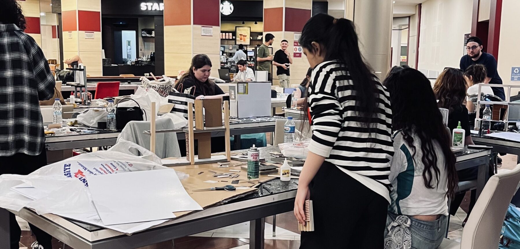 Amb cartó ploma principalment i altres elements es tracta de crear uns escenaris en els quals, després l’alumnat havia de fer un petit travelling amb les càmeres, fent una sensació de filmació en espai real.